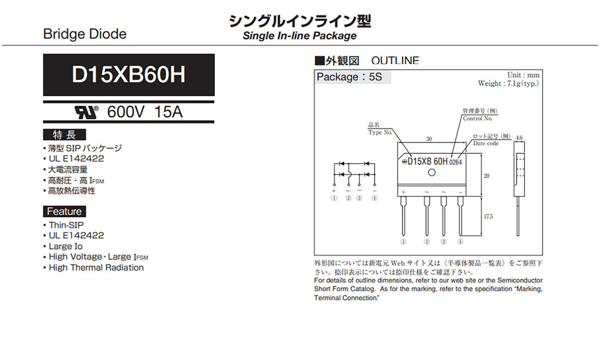 1PC D15XB60 DIP-4 Rectifier Diode 15A 600V D15SB60 Bridge Stack Flat Bridge 4 feet