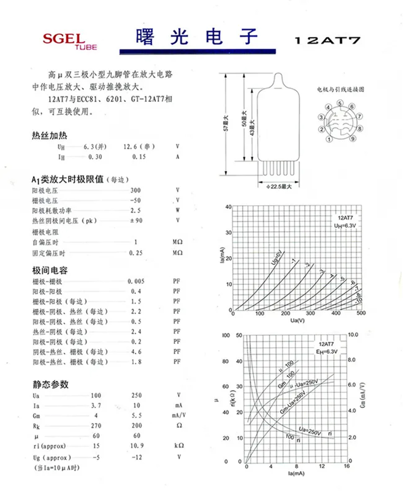 Shuguang 12AT7-T Electronic Tube Vacuum Tube Amplifier 12AT7 Tube DIY